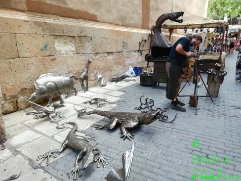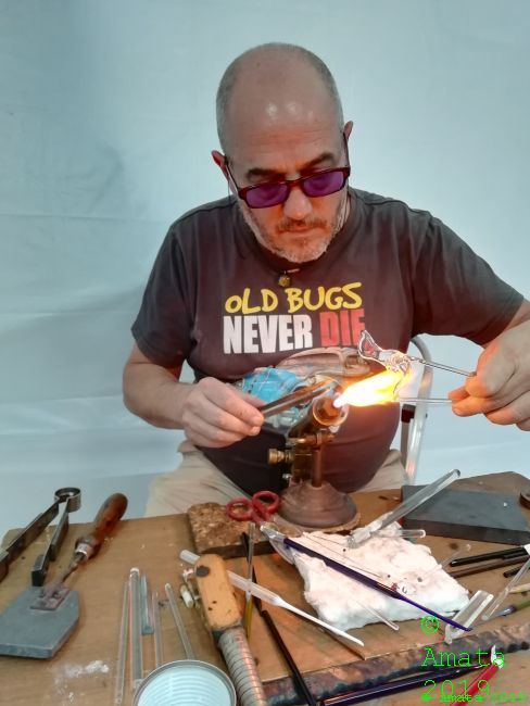 En un entorno encantador montábamos una feria muy guapa y el público mostró gran interés en las demostraciones del herrero, del soplador de vidrio, del orfebre y de las bolilleras. En los talleres de grabar cristal y de alfarería, de modelado de barro y de instrumentos musicales los niños hicieron sus propias piezas de artesanía. En pocas palabras: ¡una feria típica de Amata!