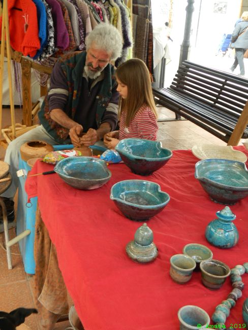 We repeated the fair we had to cancel at the beginning of February, due to strong winds, but again the weather was not kind. The sky was grey and on Sunday it hasn´t stopped raining all day. Fortunately this time we built up our fair in "Los Porches" (which has a roof), in the center of the town.