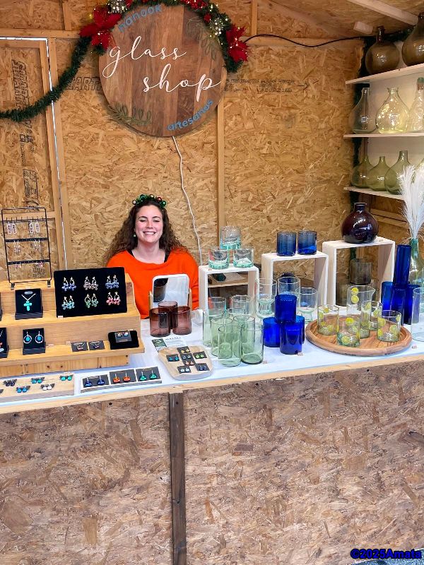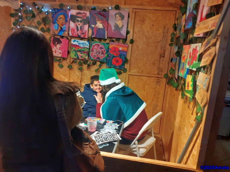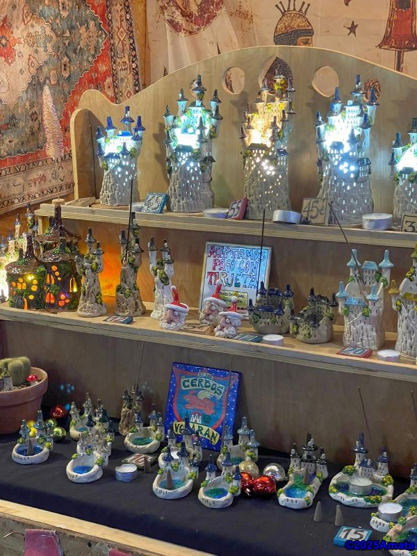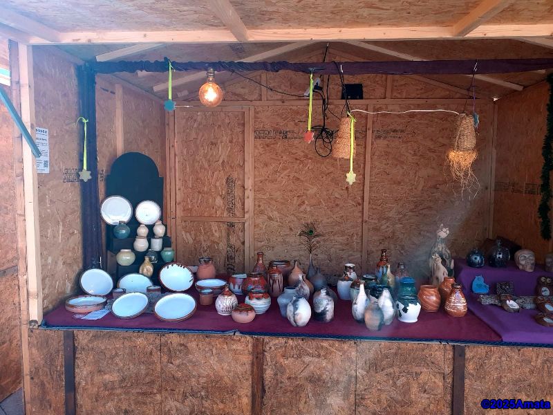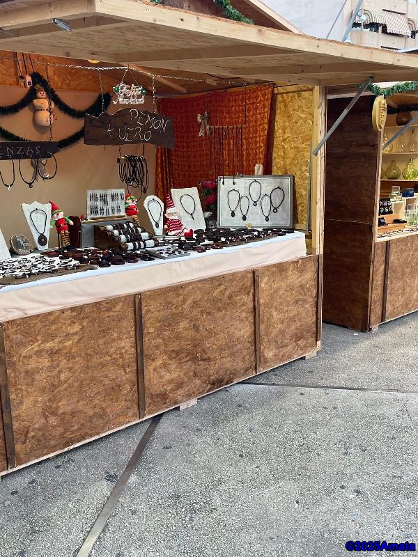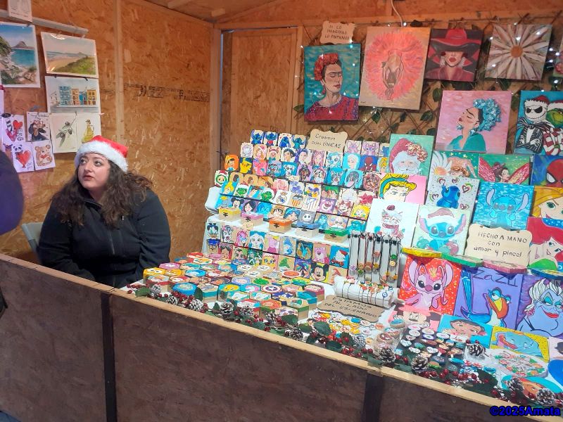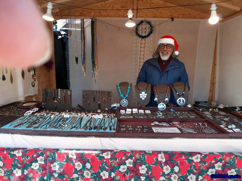 For eight of the ten days, the weather was perfect, and we enjoyed the wonderful atmosphere, the many performances, and the luxury of working from a booth, which we only had to close at night. We decided not to open on Christmas Day and the last Sunday due to the rain.
